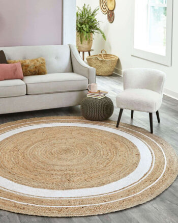 Round White Border Braided Jute Rug