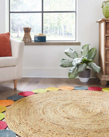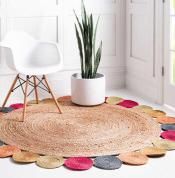 Round Colorful Circle Design Braided Jute Rug