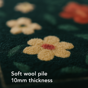 Washable Nordic Floral Layer Wool Rug Soft Carpet, Living Room,