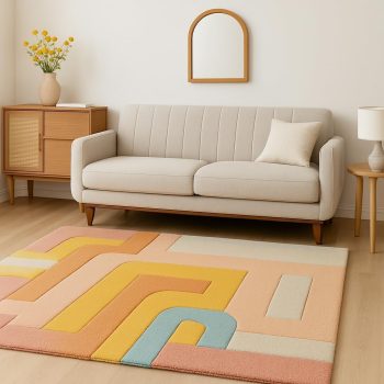 Contemporary Abstract Geometric Design Modern Rug (Yellow)