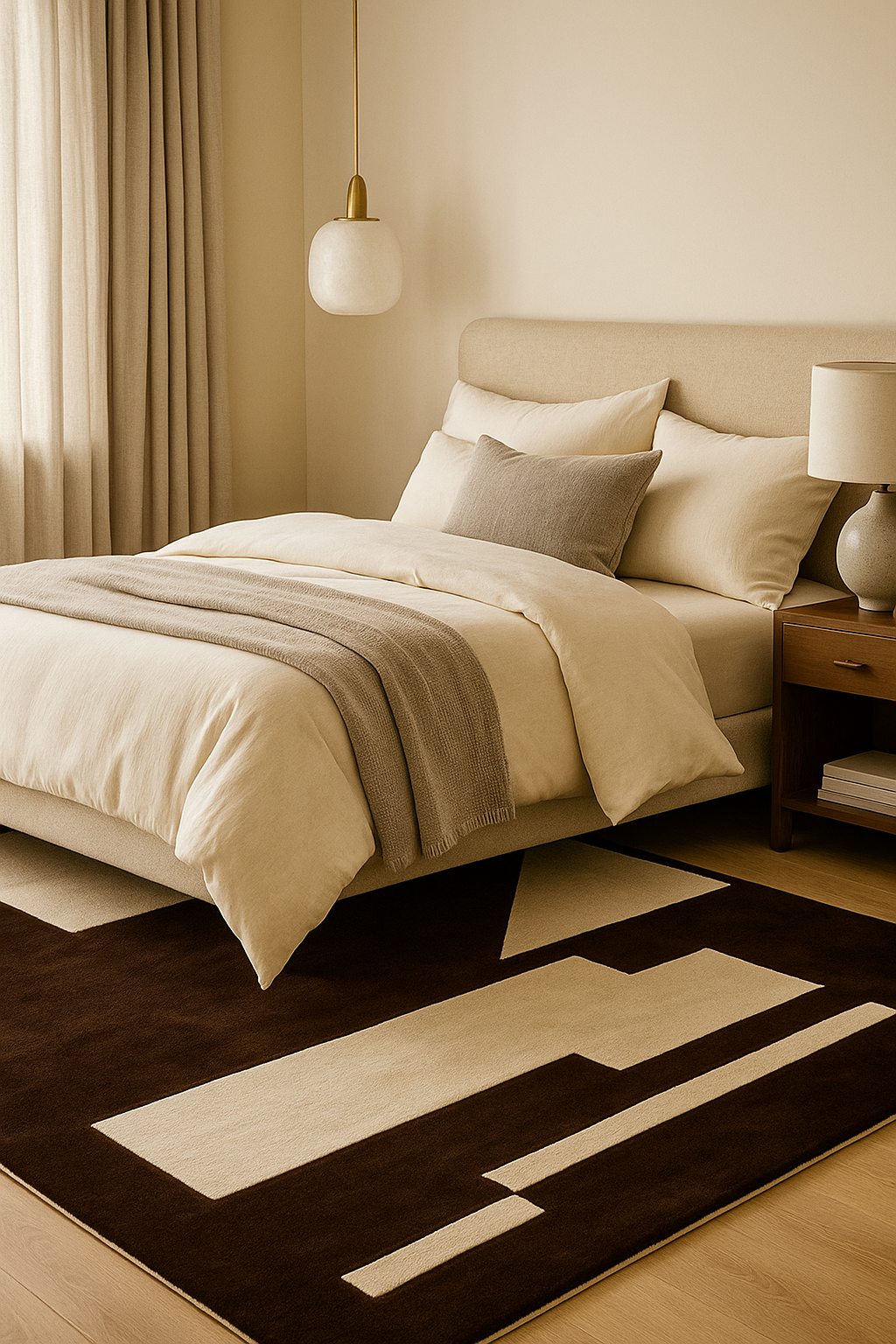• Premium Wool Surface: Handcrafted from high-quality wool for a naturally soft and plush texture. Wool’s natural resilience makes it durable and long-lasting. Comfortable underfoot, perfect for daily use.