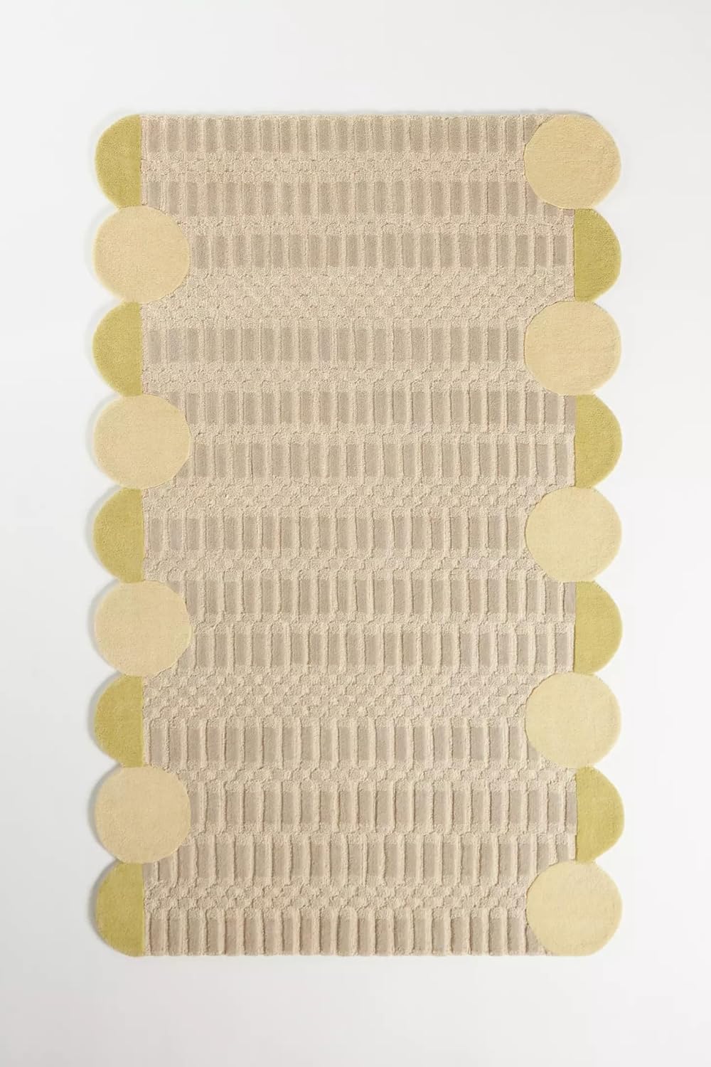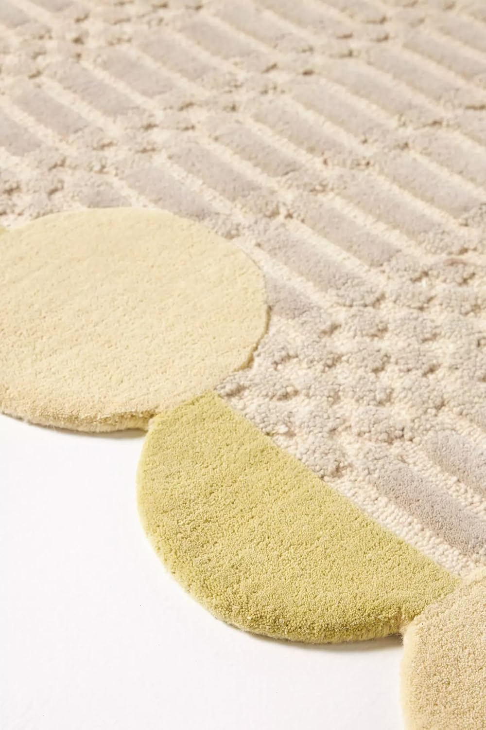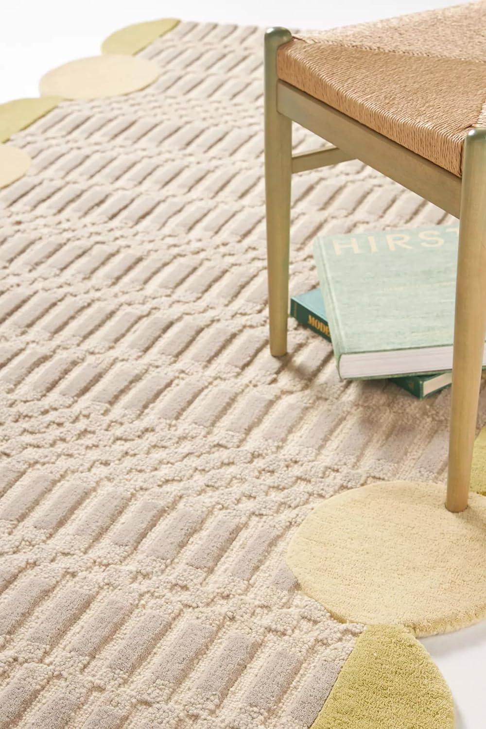- Sculptural Geometric Design: Features a contemporary layout with raised textures and playful circular edges, creating a visually striking and modern statement piece.